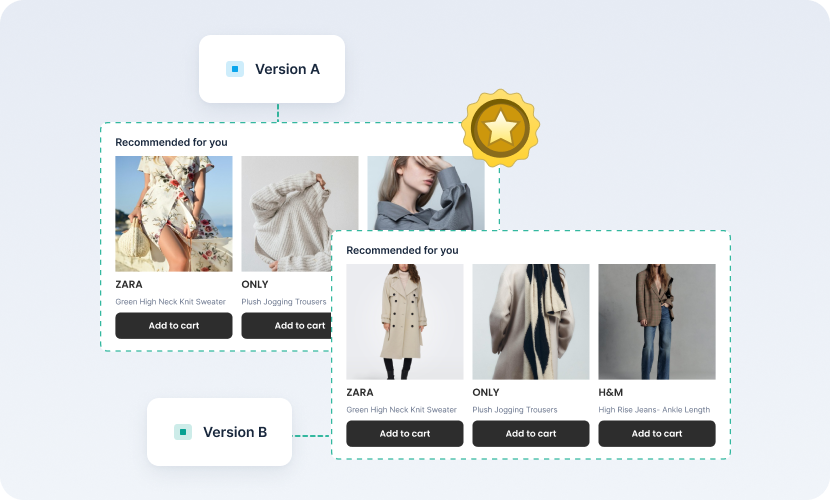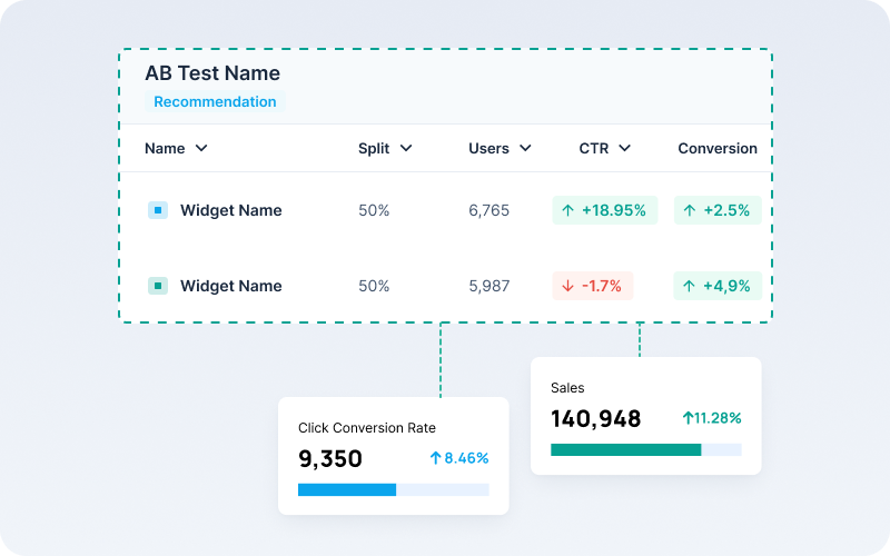Optimize Conversion Rates: By comparing two versions of Recommendation or Search widgets, you can identify which version generates higher conversion rates. This allows you to refine your marketing strategies and website design to better engage your audience and drive more conversions.