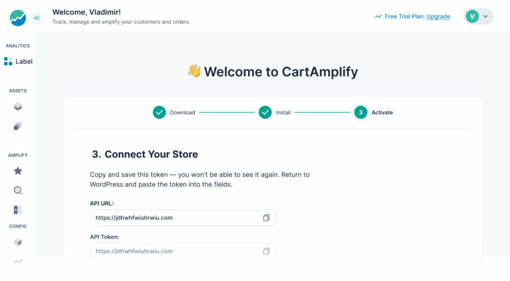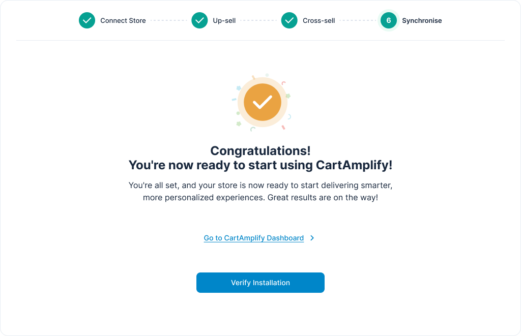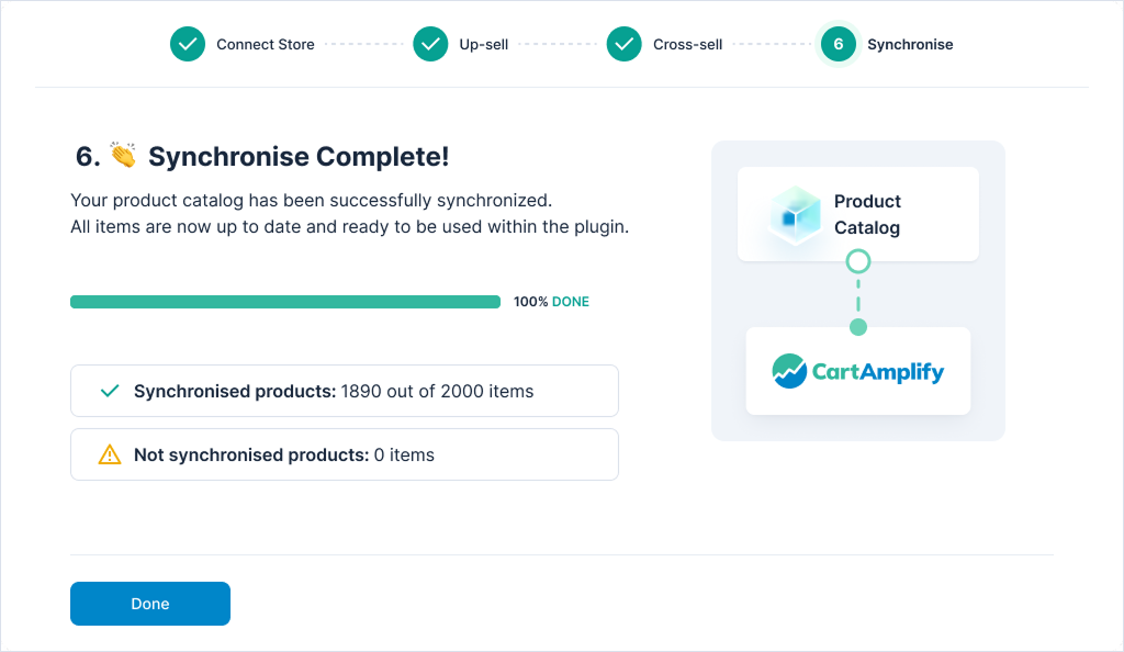 Once connected, CartAmplify will automatically sync your product catalog and Connect interactions or occurrence on your website.